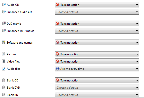 Step 4: Review your settings.  For each type of media, use the dropdown box to accept the default action or program you want to use to open files.