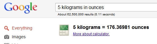 As you can see, we’ve done all these conversions without even visiting another website.  Quick and easy.  There’s some other search feature tools available that might save you time as well.  Google has some more information here.