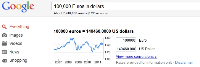 Google Question: 100,000 Euros in Dollars